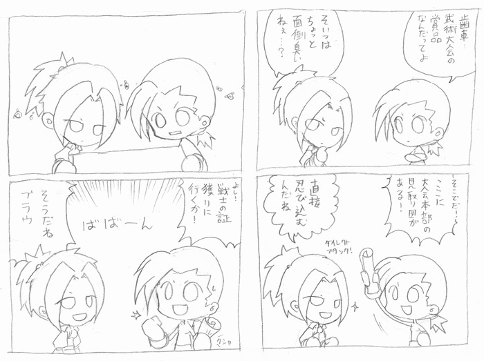 クローべの紋章を奪ったはいいけど使い道がわからなかったところとか、武術大会のくだりでも、仮にも盗賊なら大会本部なりなんなりに忍び込めばいいのに、敢えて正攻法できたところとか、何とも言えずおマヌケでかわいいなあと思う。